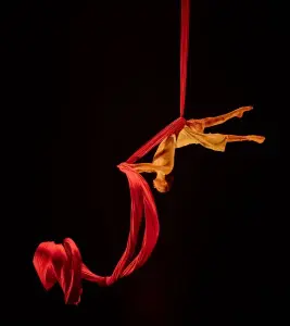 Discipline dérivée du Cerceau aérien utilisant un trapèze simple accroché en un seul point, dans lequel l’acrobate effectue des mouvements chorégraphiés et acrobatiques. Le Trapèze danse peut être fixe ou en ballant, utilisé en hauteur et à proximité du sol. Le Trapèze danse travaillé à proximité du sol permet à l’acrobate d’effectuer des propulsions avec les pieds, des jeux chorégraphiques, des variations de vitesse, etc.