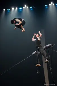 Discipline aérienne constituée d’une corde détendue fixée en ses deux extrêmes afin de former une balançoire d’environ 6 mètres de long où l’acrobate enchaîne en ballant des suspensions, tourniquets et autres acrobaties aériennes. Utilisée au XVIIe par les funambules, l’invention de cette discipline est antérieure au trapèze.